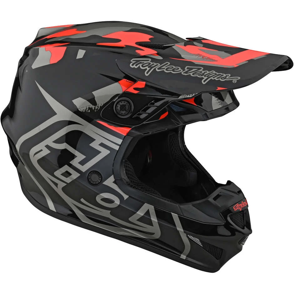 Casco Moto Cross Enduro Troy Lee Designs GP OVERLOAD Camo Nero Rocket Rosso