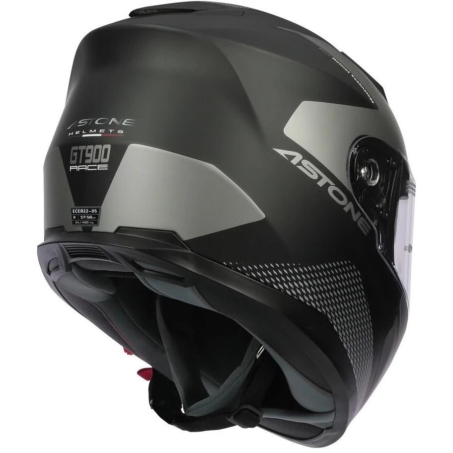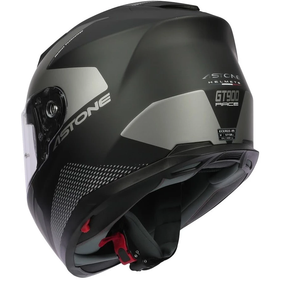 GT900, casco integrale ultra accessoriato. Visiera con lente Pinlock antiappannamento, visierino parasole ritraibile, sistema di smontaggio della visiera senza attrezzi, sezioni di ventilazione inferiori, superiori e posteriori. La doppia calotta, il paravento e il paranaso offrono il massimo del comfort. Il taglio e la forma della calotta, inoltre, conferiscono allo stesso tempo aerodinamicità e un ampio campo visivo.