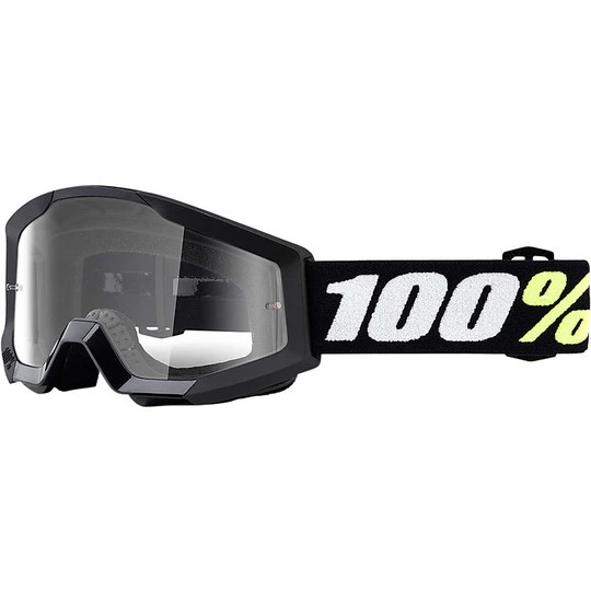 Maschera Occhiali da Bambino Moto Cross Enduro 100% Strata Mini Nero Lente Trasparente